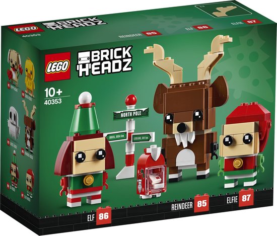 Kom helemaal in kerstsfeer met deze schattige, van stenen gebouwde LEGO® BrickHeadz™ 40353 Rendier, Elf en Elfie figuren, een leuk cadeautje dat LEGO® fans graag zullen bouwen en neerzetten. Het rendier staat op een bouwbaar noordpooltafereel, inclusief wegwijzer en de brievenbus van de Kerstman met 2 brieven.