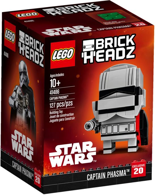 Deze LEGO® BrickHeadz bouwfiguur van Captain Phasma™ heeft authentieke details uit de blockbuster Star Wars: The Force Awakens, inclusief karakteristiek First Order Stormtrooper harnas en helm, een bouwbare cape en een afneembaar blasterpistool.